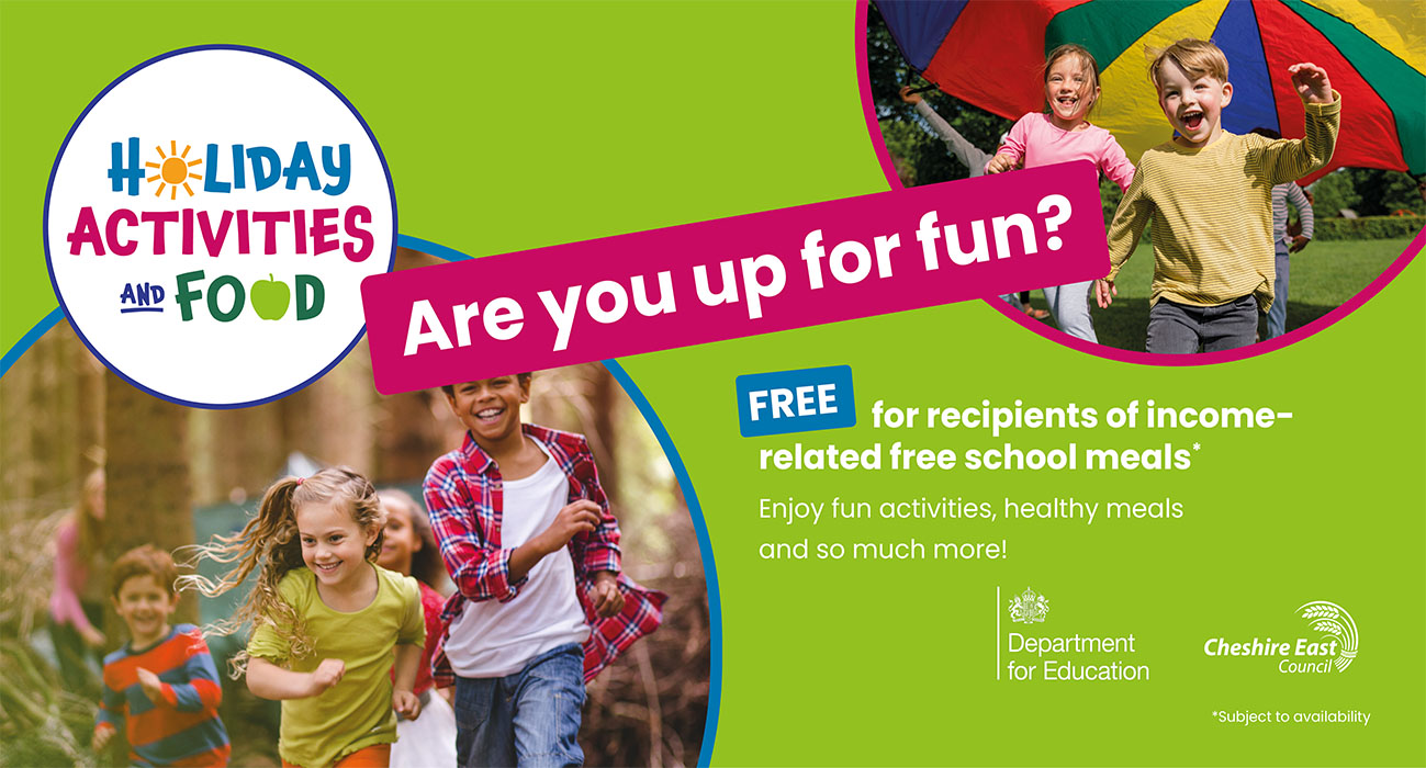 Cheshire East Council are proud to present the Holiday Activities and Food programme, which is made up of a number of local schools, holiday club providers, community and voluntary organisations to provide families with fun activities, healthy meals and more. This is free for recipients of income-related free school meals.